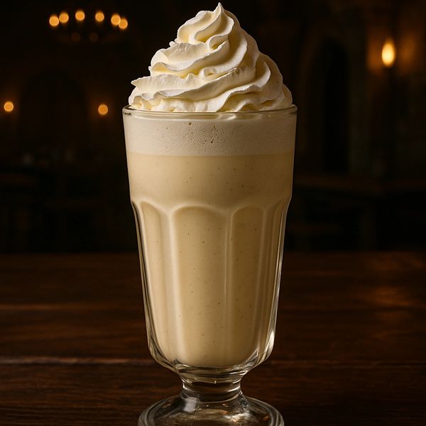 Helado de café, leche entera, salsa de caramelo y crema chantilly .